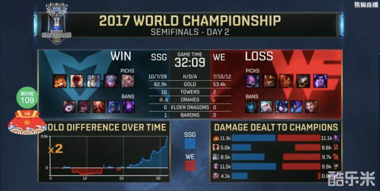 但意志顽强的三星并没有放弃,正如解说长毛说的一样,SSG比WE打的要耐心很多。在第二局比赛当中,SSG选出了中单马尔扎哈对xiye的加里奥进行Counter,同时也祭出了保护能力最强的风女。事实也证明,这是一个成功的BP。风女的超强保护让WE的“为所欲为”阵容显得无法再“为所欲为”,好几次精彩的开团都让风女的大招完美化解,甚至被创造反打的机会。比赛后期,SSG抓住了WE的失误,一波团战灭掉四人并拿下大龙,顺利扳回一局。