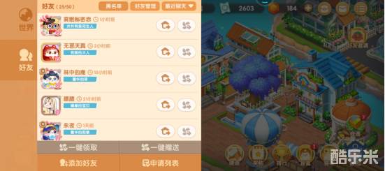 4、我们点击好友的页面进行串门,尽量找繁华度高的小伙伴串门(繁华度低就意味着没有解锁玛瑙苹果树);