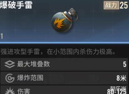 你们在对局中如果有收集到这个道具便可以将其带上,这是一种有着很高伤害的手雷,你们在使用并将其丢出去之后,它就会在特定的时间之后进行爆炸,然后就会周边区域中的人员造成高额伤害。