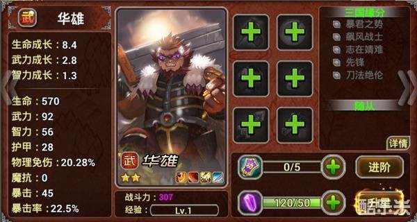 华雄:近战杀伤型,能降低敌人速度,使整排的敌人昏迷。独白:“关羽,我跟你什么仇什么怨。”(作者旁白:曾几何时,你让我感觉你很牛逼,结果……我错了,不是你牛逼,而是你的对手太菜了。)