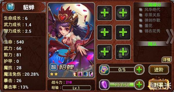 袁绍:近战防卫型,使用嘲讽吸引敌人火力,并拥有强健的体魄。独白:“出身不能选择,我能有今天,是凭借自己努力和勤奋,除此之外的资本等于零。”(作者旁白,乱世,不论出生,只看能力,时势造英雄。)