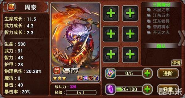 周泰:近战杀伤型,强力的武力输出,并能在濒死时继续奋战。独白:“每次我都是拼命地护住了脸。”(作者旁白:不死小强,非你莫属。)