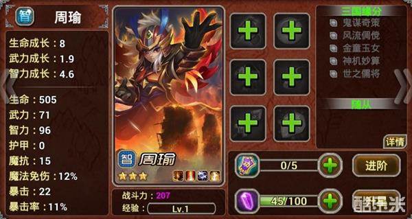 朱然:近战防卫型,可以将最近的敌人击飞,破坏敌人的阵型。独白:“很多人都不认识我,是因为我的名字不霸气么?”(作者旁白:哥们,要不你改名叫猪八戒吧,一定会很多人记住你。)