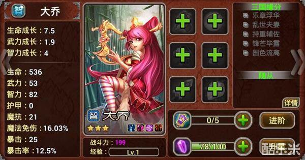 小乔:远程辅助型,擅长治疗友军,并降低敌人的武力和智力。独白:”人家虽然是大人了,但很敏感的。“(作者旁白:好吧,我承认我邪恶了,现在去面壁思过。)