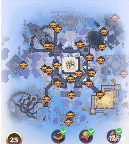 1.梦幻新诛仙倒悬城探灵位置如下,一共有25个: