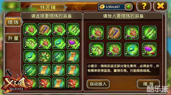 小伙伴们在《兵临三国》的副本战役中经常能捡到掉落的装备,随着战斗深入,等级升高,好多绿色装备就变成了鸡肋,留着占地方丢了又觉得可惜~这个时候你就可以把自己的囤货全部扔到铁匠铺里去熔炼掉了。