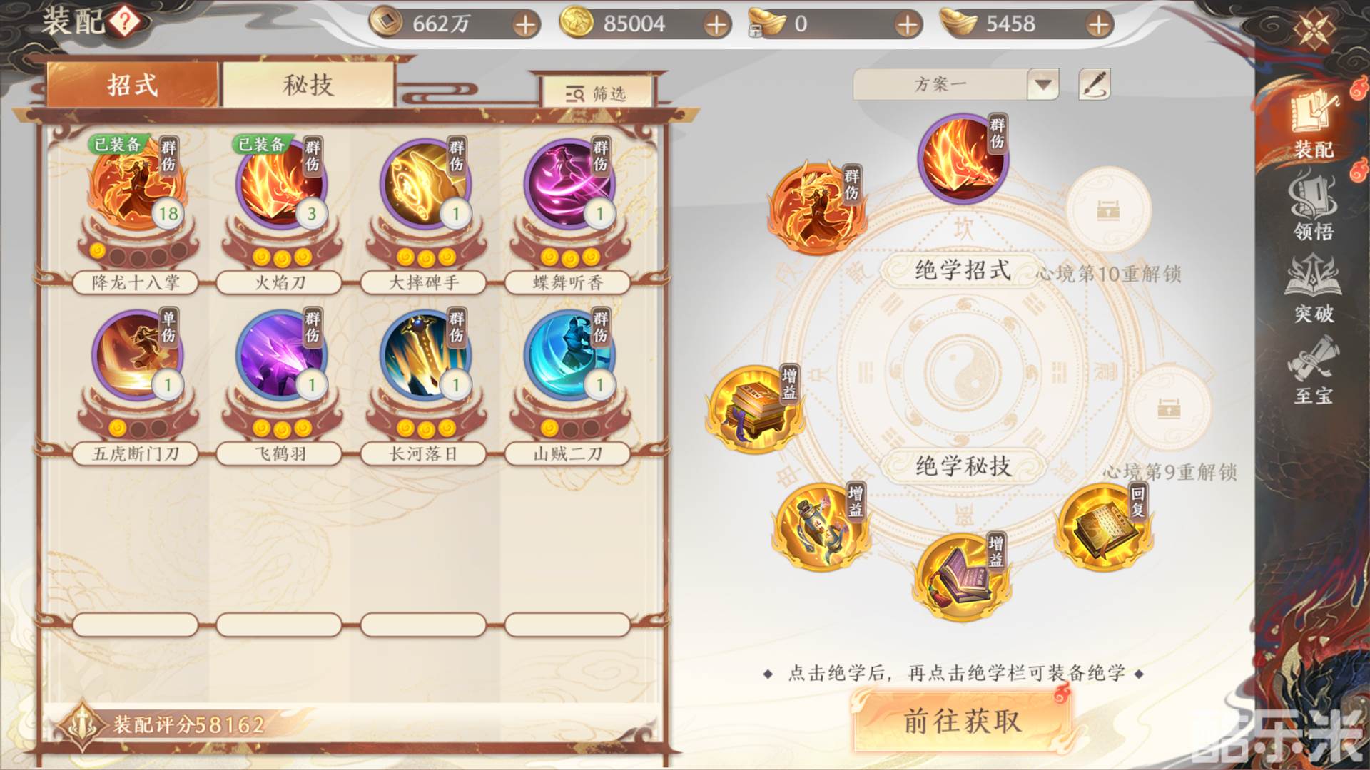 伴随着等级提升,心境重数也需要进行突破,心境影响【绝学槽位】、【武学等级上限】,是必须要提升的内容哦。