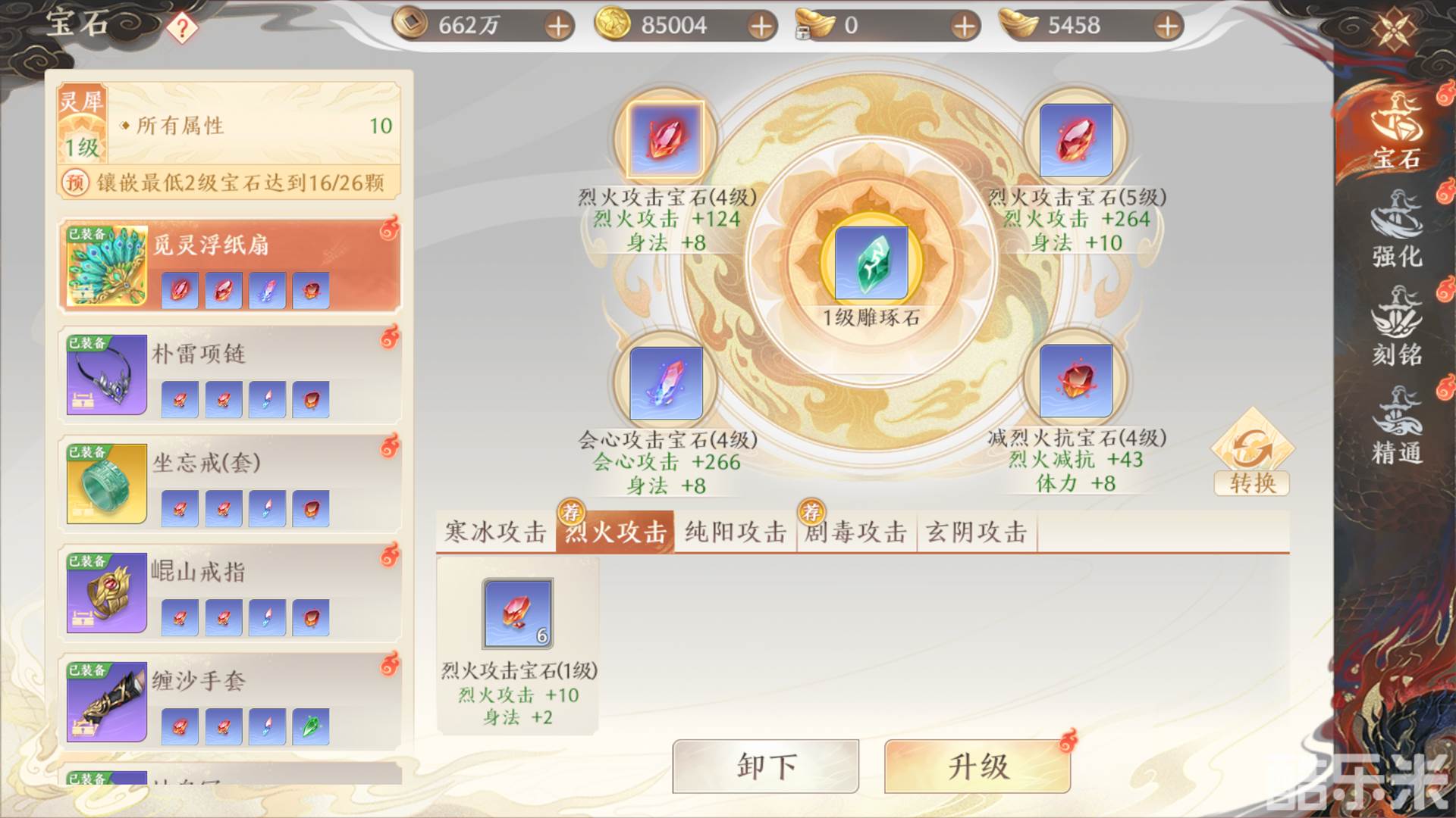 闯荡江湖,一身强大的装备必不可少。少侠可以对自己的装备进行宝石镶嵌、强化、刻铭、精通等操作。