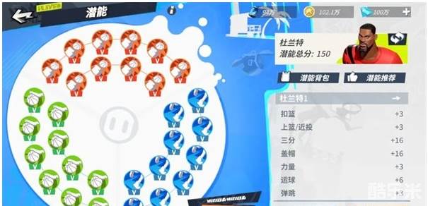 该潜能主要提升杜兰特的三分球和盖帽能力,让球员在强化三分球得分能力的同时,在防守端更容易压缩对方出手空间。