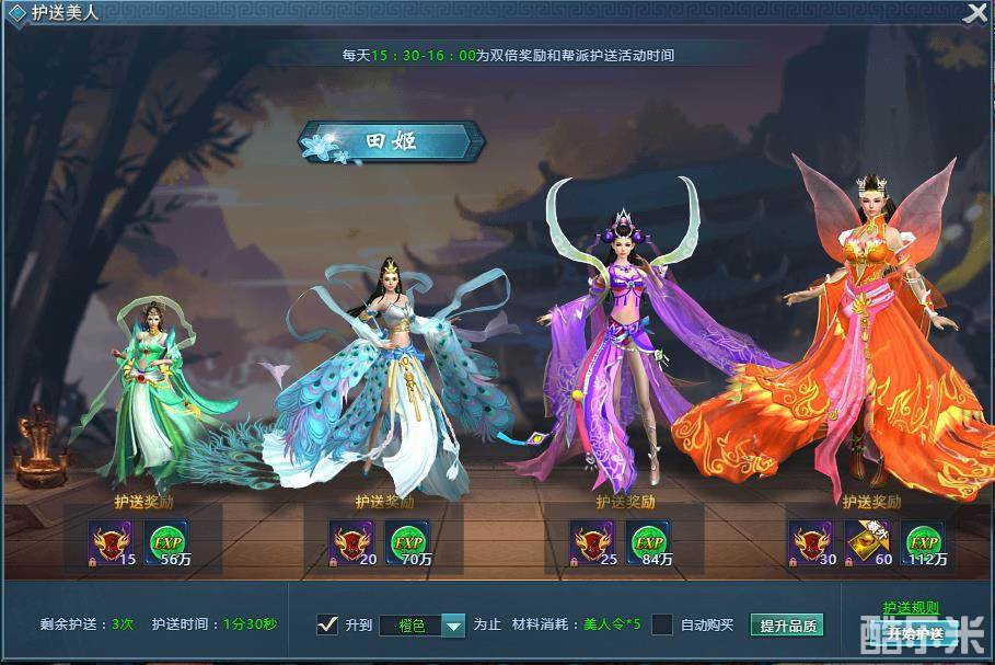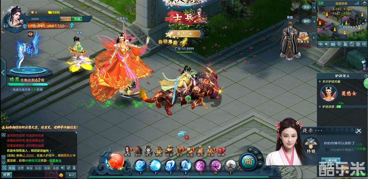 美人如玉美人如歌,美人需要呵护.《思美人》中美人等着玩家来拯救,玩家只要等级到达40级就可以开启美人护送的玩法了.美人的品质越高,那么玩家就可以获得更高的奖励.当然,最高品质的美人就是莫愁女了,倾国倾城莫愁女等着你来护送,快来拯救莫愁女吧!