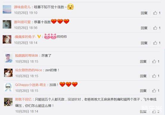 QGhappy获得十连胜,粉丝们也是相当高兴纷纷前来打CALL,不得不说QGhappy是真的棒,不知不觉中就获得了十连胜,那么接下来他们会不会打破自己创造的十五连胜记录呢!我们一起来期待吧!