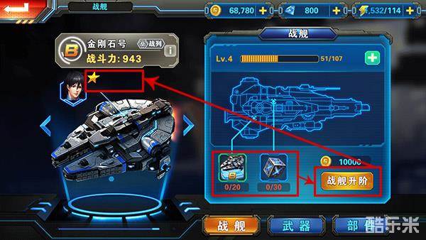 提高等级、部件改造、解锁武器固然能提高整体战力,但要想打造顶级战舰,必须对战舰进行升阶,提升战舰星级。每艘战舰最高可升至五星。