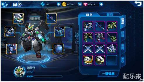 在《机动骑士》游戏中,每个玩家都有六个装备位。而且在玩家进入游戏中,新手礼包会赠送玩家相应的整套装备。装备部件包括:武器、头盔、胸甲、腿甲、涡轮和核心。装备基础属性主要包括:攻击、防御、血量。