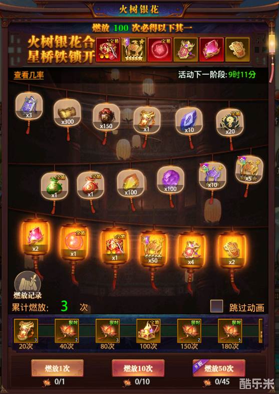 这个活动主要分为两大部分,分别是通过放烟花来抽取奖励的火树银花和通过讨伐捣乱恶党获取奖励的平乱除恶。