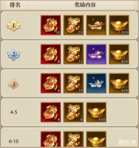 前三名的奖励除了聚贤令寻访令和元宝外,更是能获得稀有称号——靖恶扬威、镇邪弘善、除暴安良。每个称号都能为全体武将加生命值和攻击力,加成也是排名越靠前的称号加的越多。所以建议主公们都去参与,因为这些称号不只是加成的问题,也是区服之间实力的象征!