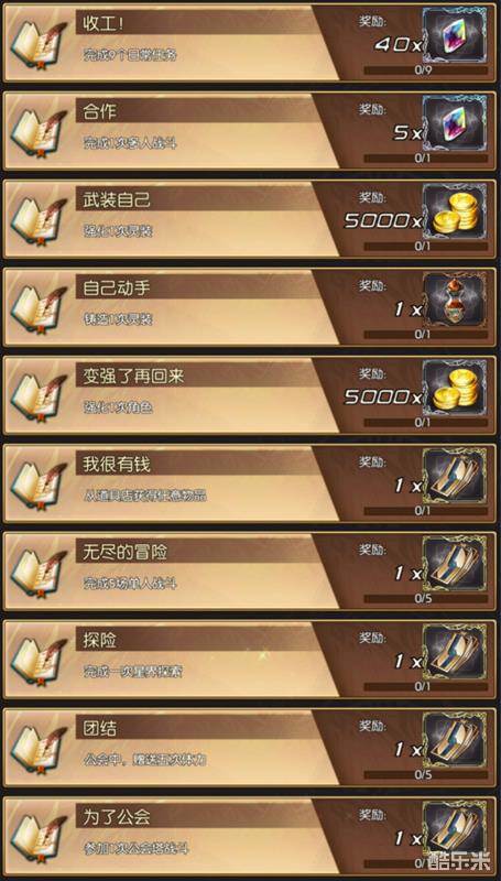 游戏中的“每日任务”会在每天0点刷新,目前版本每天总共可以获得45枚星钻、10000金币、1瓶中型体力药剂、5张挑战状。里面的任务达成条件都十分简单,只要每天花上很少的时间就可以轻松积累道具资源,大家一定要记住哟。
