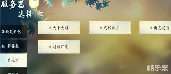 推荐服:绝大风华、群龙之首、九天揽月、武林霸主、西子湖畔。(推荐服人数相对少一些,不需要派对)