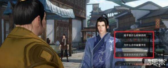 2、遇到邱老板找玩家讨扇子,选择“扇子是什么时候丢的”,以及“这是你丢的扇子吗”;