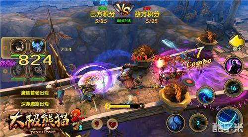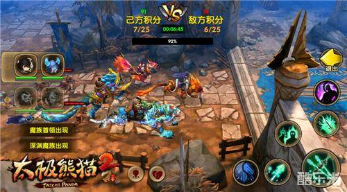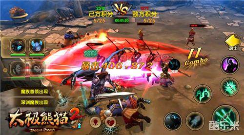 战场中分布有3个争夺区域,分别为左上、右下以及中央区域,争夺区域会刷新精英怪物。开场5分钟后,战场左上和右下资源区会刷新2个小BOSS,而中场的大BOSS将在战斗开始10分钟后刷新,这里也将成为战役的主战场。同时,为了增加战场的趣味性,《太极熊猫2》还加入了悬赏、助攻以及求援机制。当玩家连杀达到一定数量时,获得一个“悬赏”buff,并进行全屏通告,击杀“悬赏”玩家可以获得大量积分。