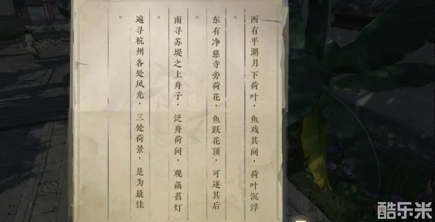 3、何人留字,钱王祠(977,1023)互动上香即可触发任务,根据纸团提示去三个地方寻找线索;
