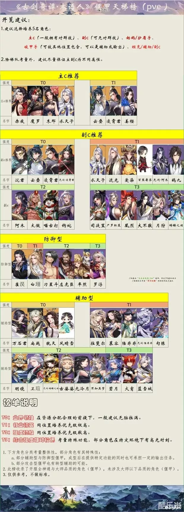 2.除梯队考量外,建议尽量保证主副c为不同属性。