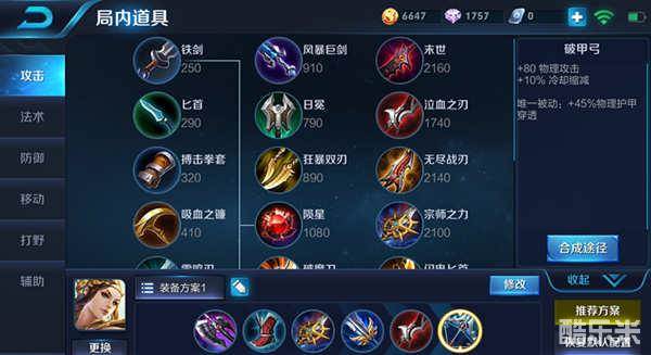 暗影战斧的各个属性都非常的适合虞姬,让前期虞姬的消耗与生存能力都得到一定的保障,在上面也提到过,虞姬是非常依赖技能输出的,而冷静之靴提供CD,让虞姬更频繁的释放技能。宗师之力再次的提高虞姬的单点输出能力,让虞姬的单挑能力更出众,破军最大化强化虞姬的输出能力,让虞姬的伤害更爆炸。泣血之刃赋予虞姬不俗的续航能力,不惧怕敌方过多的消耗。最后的破甲弓则是针对敌方的前排坦克,尽管他们出再多的防御装,对其也有威慑力。