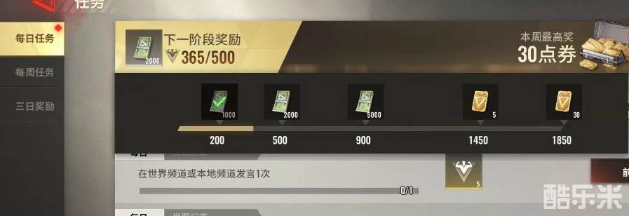 金条的第二种获取方法就是通过做任务,在游戏主页面的最下面有一个任务栏。玩家点进去之后,每一周都会有新的任务,按照任务要求完成获取一定的活跃值。在玩家,有机会只达到1450的时候可获得五个金条,当玩家活跃值达到1850的时得30个金条。虽然有些耗时间,但是白来的东西还是很香的。