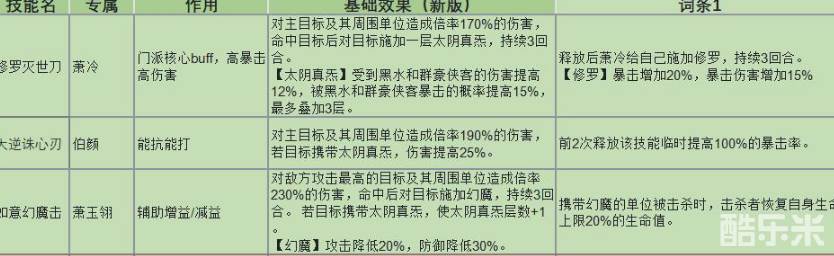 1、通过萧冷的【修罗灭世刀】给敌方单位附上<太阴真炁>增益提高我方输出的暴击、暴击伤害。