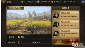 玩家作为主公可以派遣将领进行农田和钢铁的生产。不同武将的属性对生产有不同的影响。