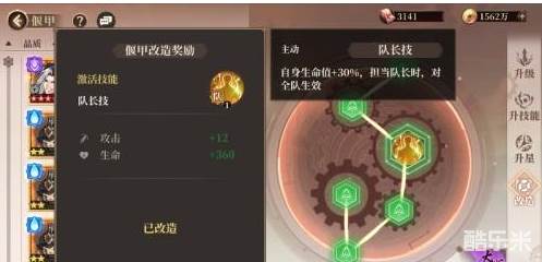 改造技能分为两类,一类是提升基础属性,另一类是第三次改造时解锁改造技能/队长技能,改造技能解锁能答复提升偃甲输出,队长技能能大复提升队友属性。