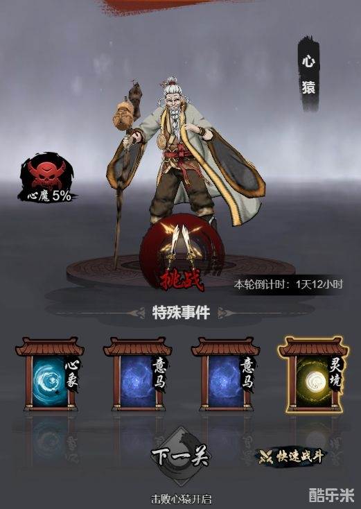 心境修炼3天一个轮回,玩家每个轮回可以挑战30层,在心境修炼中,会出现意马、灵境、心象、高人、顿悟、心猿、心魔。