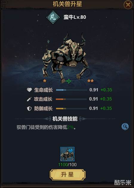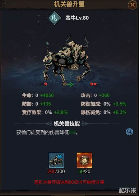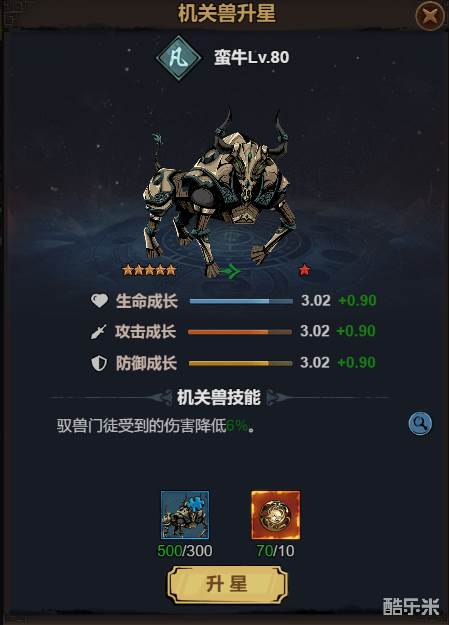 3:6星后升星机关兽会增加防御百分比、受疗效果、爆伤减免。