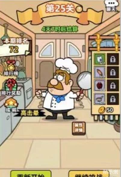 在重新挑战界面中,假如各位玩家小伙伴们遇到了打不过的厨师,可以选择截图保存厨师的属性后去发起重新挑战。但是,玩家们在这里需要注意的是发起重新挑战是需要消耗掉钻石的,并且游戏系统还会重置掉闯关的层数和穿戴的厨具。接下来大家可以选择“挑战”还是“扫荡”,其中“扫荡”可以一次性扫荡到一定次数的关卡,其中获得的厨房用具可以随便进行选择,这样玩家朋友们就可以选择对自己更有用的厨房用具。