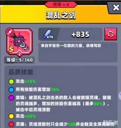 紫色:(禁锢)被混乱之剑击杀的敌人会被禁锢灵魂,禁锢的灵魂越多越多,增加的技能伤害越高(最高增伤百分之三十),被击中后灵魂消散。