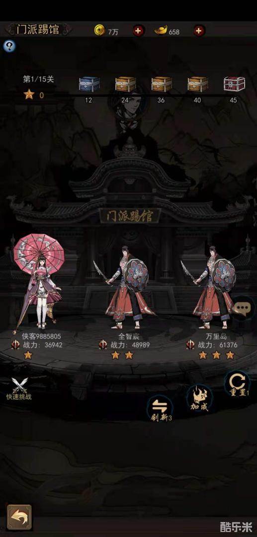 踢馆玩法有一定的关卡数,每关玩家选择一个其他玩家镜像进行挑战,胜利后方可进入下一关;