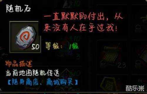 随机传送石。回城石。这两兄弟不得了!不得了!这个强大了,它们用生命成就了多少人的梦想?危机时刻挽留了多少人的性命?然而却没有几个人真正注意过他们两兄弟。特别是哥哥随机,献身数量可绕地球两圈。