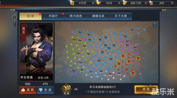 玩家们虽然立功心切,但是国战玩法只有到20级后才会开放,并且我们要加盟一个强大的公会,成为自身强有力的后盾。在觐见君王之后,便可以领取丰厚的俸禄,士为知己者死,拿了俸禄自然要荡平敌人。在地图上我们可以看到哪些国家势力正在交战,如果是我方的敌对势力的话,便可出兵,一举拿下对方的城池。