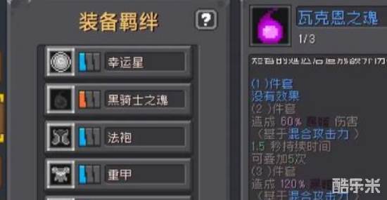 这里讲述到的羁绊其实就是每个装备会附带的一个词条效果,在对局中只要你们所使用的几件装备相互间有一定的羁效果存在,那么就可以为角色提供更高的属性加成了。把这里每个人最多只能搭配上六件装备,它们会是人物身上的不同这个饰品道具,其中的脚,头和身上的盔甲这些属于防御类的道具,可以进一步提升角色的防御力,也能提升人物的力量和敏捷度还有才智。他们之间的羁绊效果是可以根据这些道具的品质,来提供额外的增幅效果。