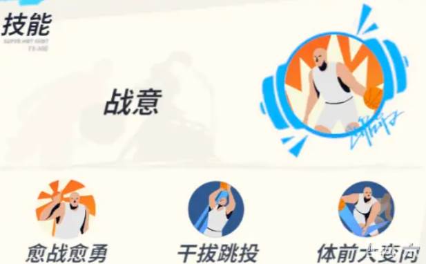 字母哥本身的技能叫做战争意图,这个技能是一个自我BUFF型技能,使用后可以增强自己各方面其他的数值。这个技能最多可以升级四次,第一次是增加能量,第二次是提高投篮命中,第三次是杜兰特没有盖帽成功就会返还能量。第四次则是在忽略任何干扰的情况下,提高3分命中。