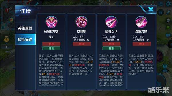 轻剑形态下的二技能主要用于对线期消耗敌人和减速敌人。而重剑形态下的二技能是花木兰主要的控制技能,但是二技能的施放只能选定一个方向,并且移动速度很慢。因此只有在花木兰非常接近敌方的时候,才能使用二技能。