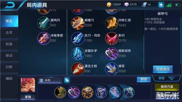 对线期先出影忍之足能够在前期提供足够的护甲和减免普攻伤害,让花木兰在线上更好的抗压发育。S9赛季初,花木兰经历了一些调整,削弱了作为战士的控制能力,但是在双剑状态下的攻击有所提升。连续5次攻击触发印记伤害有了2.0AD的加成。因此选择暗影战斧既可以对敌方后排造成威胁,也能打的动敌方的前排英雄。不祥征兆和魔女斗篷增加了花木兰作为战士的坦克能力,更好的在团战中打出足够的伤害。也能够帮助队友吸收一定的伤害,获得团战的胜利。冰痕之握能够在团战中粘住对面的C位进行输出,提供的护甲也进一步的提高了花木兰的生存能力。最后一件破甲弓增加花木兰的输出,对敌方后排造成更大的威胁。
