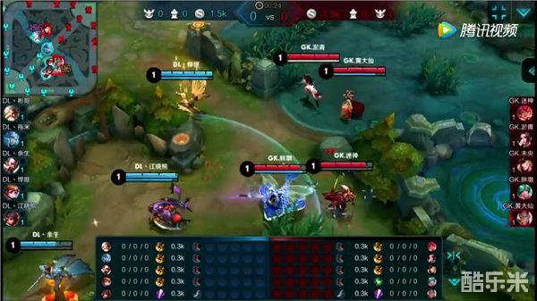 开局后,红色方四人想反蓝色方的红BUFF,但蓝色方早有防备,双方处于对峙状态。而从小地图上我们可以看到,老夫子想过去反红BUFF,不过马可波罗早已在等待,因此老夫子只好选择撤退,无功而返。