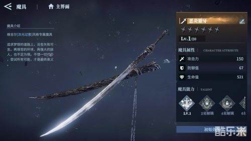 次元过客维吉尔的专属魔具为一把缠绕着无尽魔力的武士刀——恶炎獠牙。