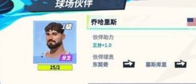 这个角色的伙伴大家可以带上乔哈里斯和马库斯斯马特,这两个伙伴不仅可以大大提高角色的三分球效果,而且还能将角色的抢断能力随之大大增强,值得大家去试试看哦。塞斯库里在这个游戏中是一个比较厉害的分位,强度是非常高的,喜欢玩中远距离投射的玩家使用效果会比较好,适合不太善于内线战斗的玩家使用哦。