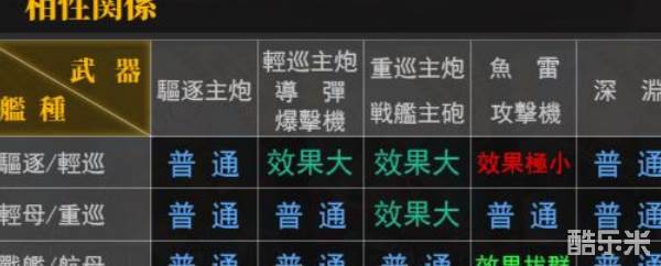 比如鱼雷克制重型装甲(战列、航空母舰)、中型主炮克制轻型装甲(驱逐舰),这些都要注意。