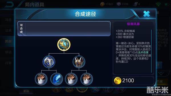 【极寒风暴】:极寒风暴是鬼谷子的和核心装备,需要在中期就合成极寒风暴,20%的冷却缩减加快了鬼谷子的群体隐身的节奏。极寒风暴还增加了不错的最大法力值,让鬼谷子在中期不用担心法力值不够用,可以频繁的使用技能消耗敌人。物理防御的增加对于需要近身作战的老夫子来说更是有极强生存保障。极寒风暴的被动减速效果能够在团战中减速多人,用来限制敌方走位是一个不错的选择。