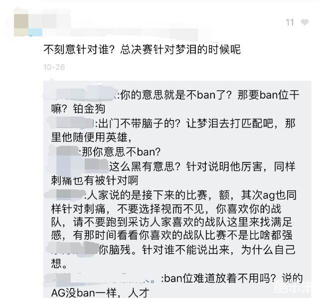 这位来自于《王者荣耀助手》昵称为“淡灰”的网友说道:“不刻意针对谁?总决赛针对梦泪的时候呢?”面对该网友的评论,许多网友也回复了自己的看法,有的称难道Ban位要放着不用吗,还有的称针对说明梦泪厉害,Hurt也一样有被针对。