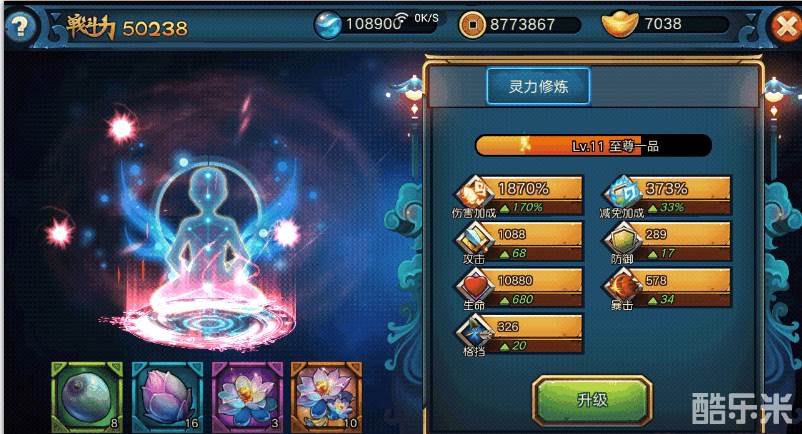 灵力修炼这点可是高度还原了小说的境界划分 提升境界能拿到较高的属性加成 而且还会开放更多的灵石槽以供镶嵌灵石 (楼主表示现在只达到了肉身难的境界)