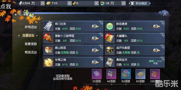 当角色达到一定等级后,可参与符合达成条件的各种活动。如果玩家想要快速升级,就可以活动中“我要经验”页签,系统就会自动筛选当前开放并且符合自身的经验活动,比如师门任务、除恶悬赏等,在完成任务的同时,也能充分了解这些活动的玩法。推荐玩家参与围剿十三路土匪和大幽魔头活动,因为这两个活动会用双倍奖励的加成,意味着完成后有两倍经验,不过怪物有限并且只在整点刷新,建议玩家自行调配时间参与。