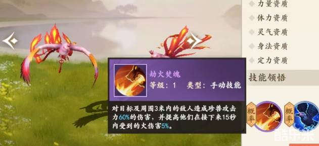 在培养过程中有几率领悟到核心技能劫火焚魄,这是一个手动释放类型,也是该宠物核心。使用之后以选定目标为中心,周围扩展到三米范围,所有里面的目标都受到影响。不仅有一次伤害,后续持续15秒的火属性增伤,才是重点。玩家所打出的火属性伤害也能够享受到加成,所以对火属性门派来说是很友好。手动释放类型也能够保证在释放爆发前先用上,这样可以让整体伤害更加强势一些。